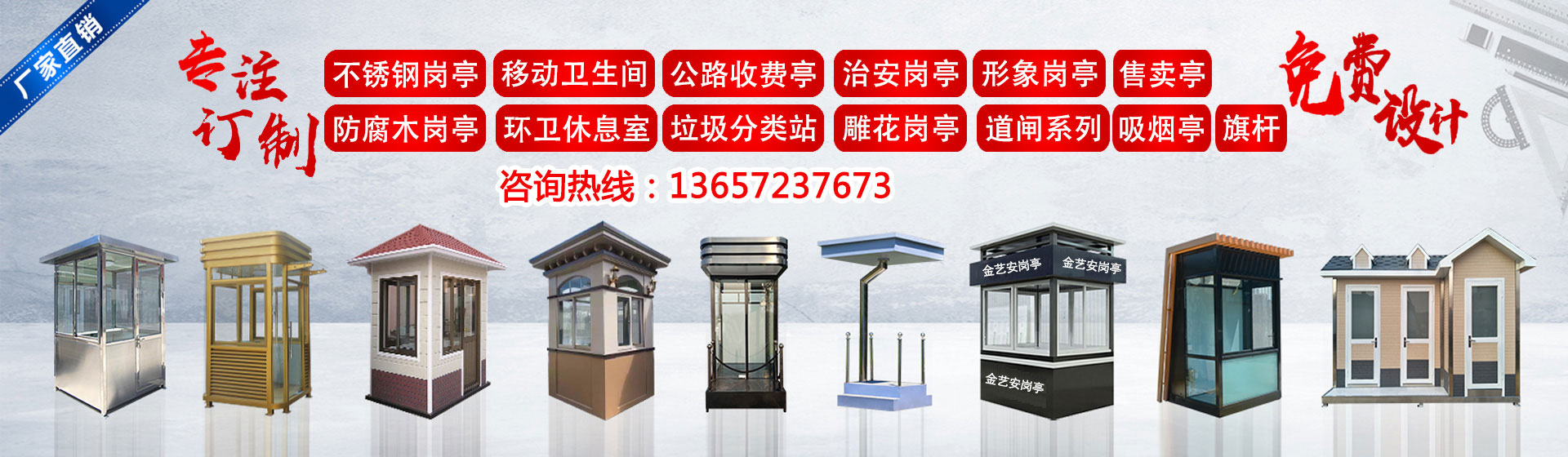 武漢金藝安金屬制品有限公司(簡(jiǎn)稱JYA)是一家專業(yè)從事設(shè)計(jì)、生產(chǎn)制作加工、銷售及售后服務(wù)一體化,為客戶提供建筑/交通/市政配套設(shè)施一站式服務(wù)企業(yè)。主營(yíng):不銹鋼崗?fù)ぃ蛋鄭復(fù)ぃ蜗髰徟_(tái),防彈崗?fù)ぃ紘娖釐復(fù)ぃ伟矋復(fù)ぁ⒕坝^崗?fù)ぃ圬浲ぃ\噲?chǎng)收費(fèi)亭、高速公路收費(fèi)亭,不銹鋼旗桿,錐型旗桿,電動(dòng)旗桿等系列產(chǎn)品。廣泛應(yīng)用于:學(xué)校,廣場(chǎng),體育場(chǎng)館,軍隊(duì),酒店,企業(yè)單位,小區(qū)停車場(chǎng),學(xué)校,醫(yī)院,工廠、市政交通收費(fèi)、平安城市管理、景觀環(huán)境美化等領(lǐng)域。 我們不斷發(fā)展壯大,秉承“品質(zhì)、信譽(yù)、服務(wù)”的經(jīng)營(yíng)理念參與市場(chǎng)競(jìng)爭(zhēng),堅(jiān)持高技術(shù)、高品質(zhì)、高效率的方針,結(jié)合用戶需求,不斷推出新產(chǎn)品,樹立品牌優(yōu)勢(shì)。擁有經(jīng)驗(yàn)豐富的專業(yè)設(shè)計(jì)師和質(zhì)量過硬的施工,銷售服務(wù)網(wǎng)絡(luò)遍及全國(guó)各地。 我們的宗旨:誠(chéng)實(shí)守信, 追求卓越, 客戶至上。今后公司將一如既往,腳踏實(shí)地,與用戶攜手合作,共創(chuàng)輝煌!...